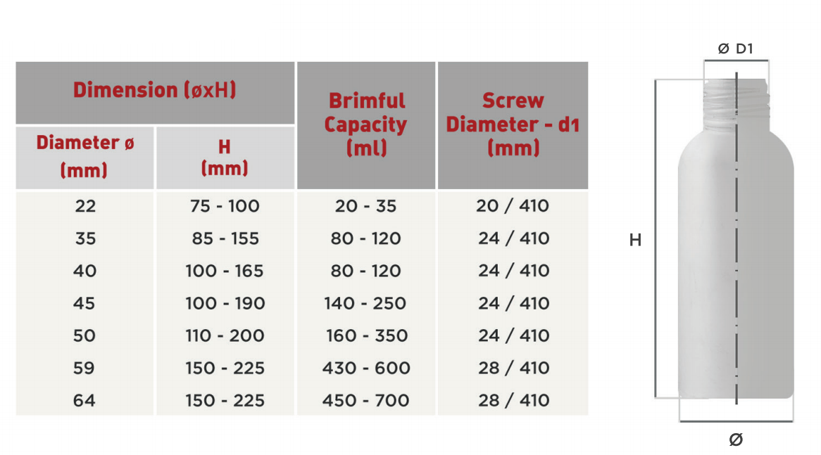 We offer a wide range of sizes, shoulders, shapes, and various thread specifications to suit different cap styles. With more than 40 years of experience, our Aluminum Screw Bottles are produced according to strict industry standards, ensuring leak-proof integrity and superior finish.